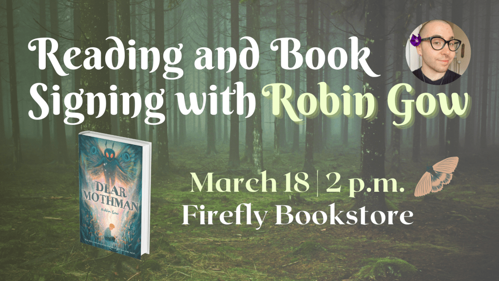 Join Firefly Bookstore in welcoming Robin Gow for the release of their new book, “Dear Mothman”! There will be a reading, Q&A, and book signing, and copies of the book will be available for purchase!